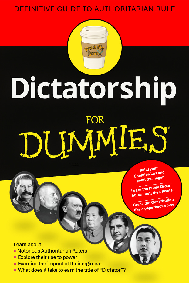 Anyone who truly loves books knows you’re not supposed to crack the spine; it’s a little taboo, like spilling coffee on the Bible. But if you actually want to learn from a paperback, you crack it, dog-ear it, highlight it, spill Red Bull across the pages, and keep reading even when there are red spots where you’ve bled on it. That’s what you do when a book is meant to be used. Steve Bannon handed Trump Dictatorship for Dummies because he knew Trump would never sit through The Rise and Fall of the Third Reich, and told him, “Flood the zone—here’s the step-by-step guide.”